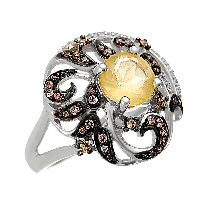 Серебро 925, родирование, 1-ситалл, 1-Раухтопаз, 1-кубик циркония, средний вес 6,51 гр.