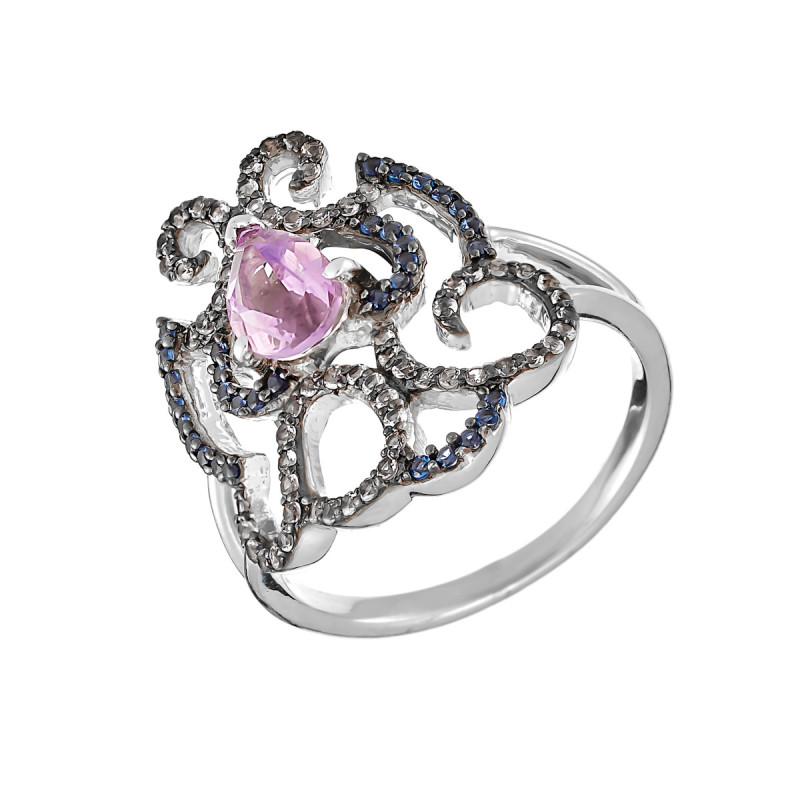 Серебро 925, родирование, 1-Аметист, 1-Иолит, 1-Раухтопаз, средний вес 3,69 гр.